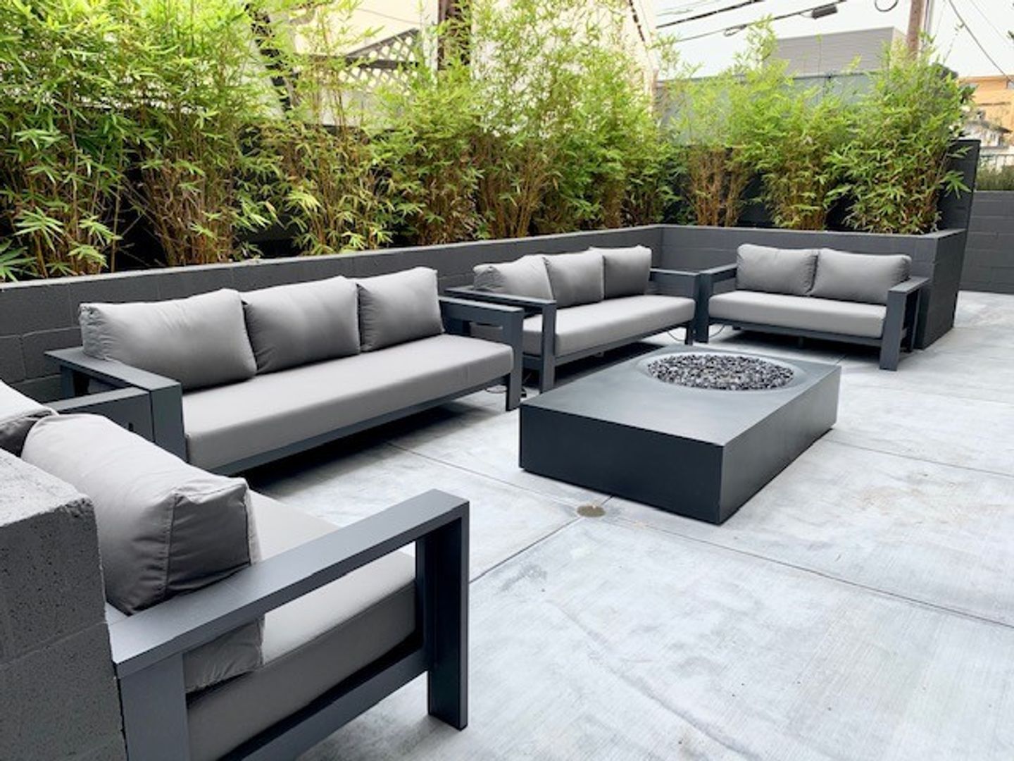 Our backyard patio is complete with a BBQ, fire pit, and patio furniture that allows you to hang out with friends!
